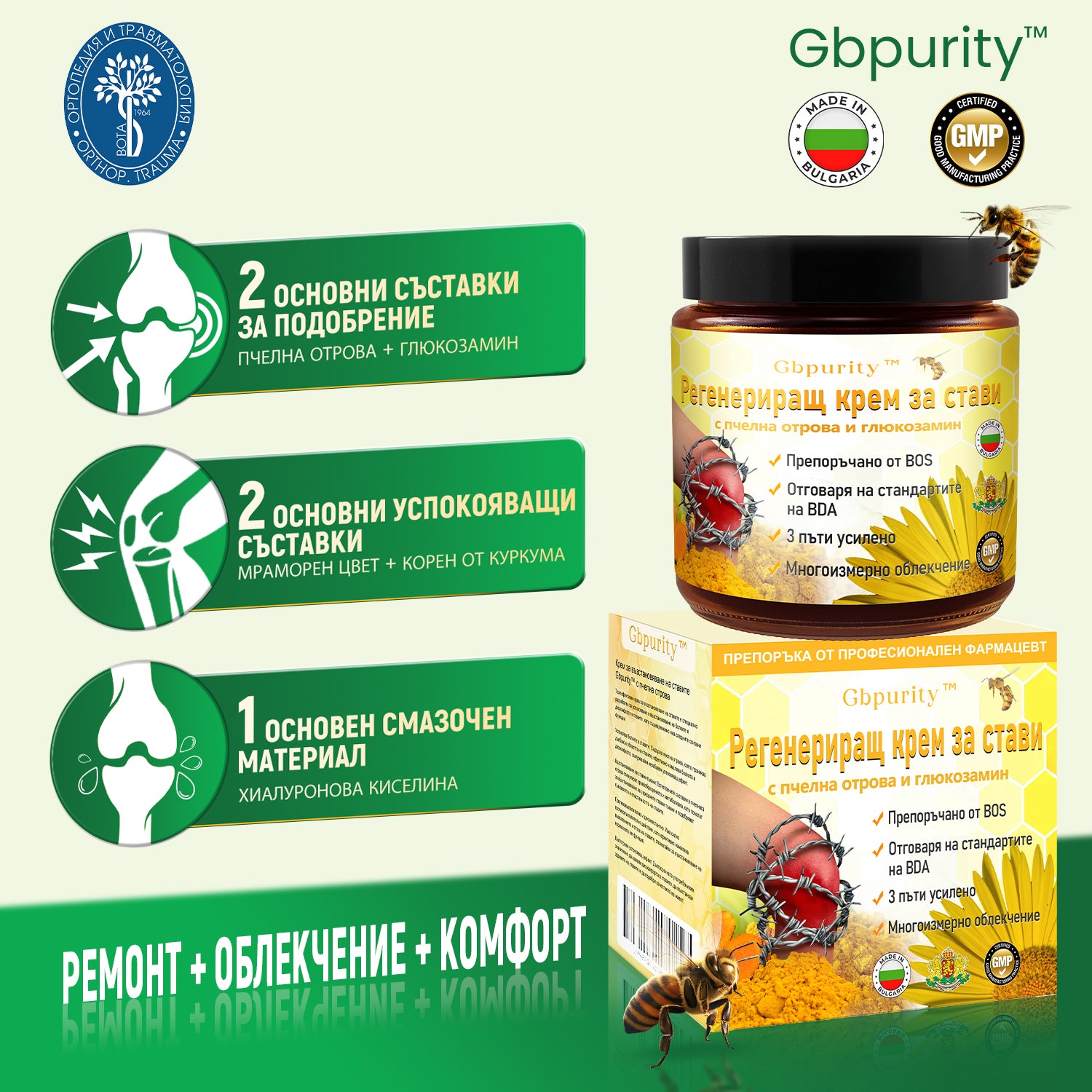 🦴𝑮𝒃𝒑𝒖𝒓𝒊𝒕𝒚™ Регенериращ крем за стави с пчелна отрова и глюкозамин — Препоръчан от водещи специалисти от Българската асоциация по ортопедия и травматология