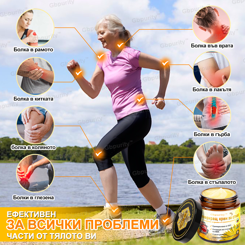Gbpurity™ Регенериращ крем за стави с пчелна отрова и глюкозамин е ключът към облекчаване на болката и по-здравословен начин на живот, като Ви помага да се наслаждавате пълноценно на всеки ден.